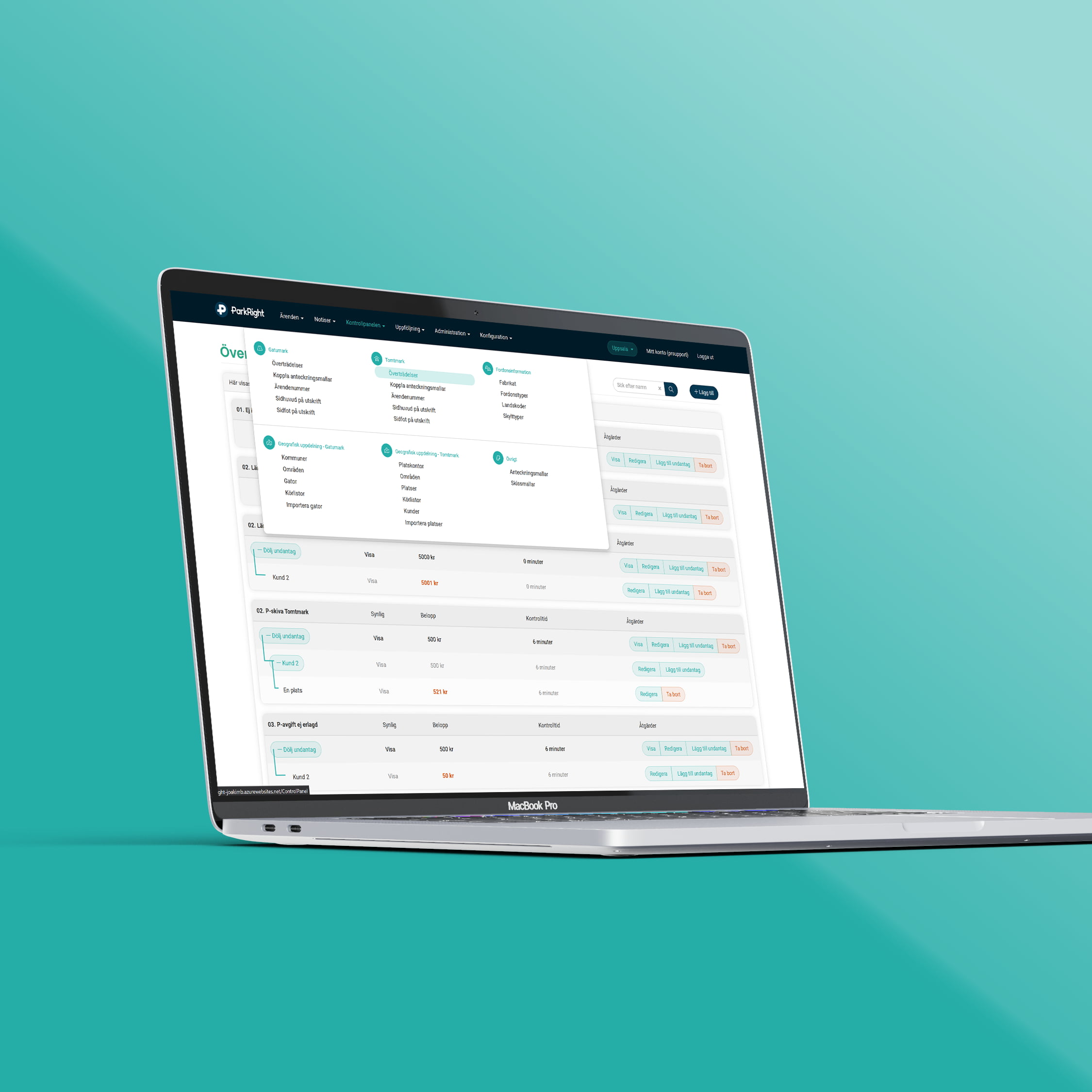 I ParkRights webb finns alla verktyg för att administrera, planera och följa upp parkeringsövervakningen